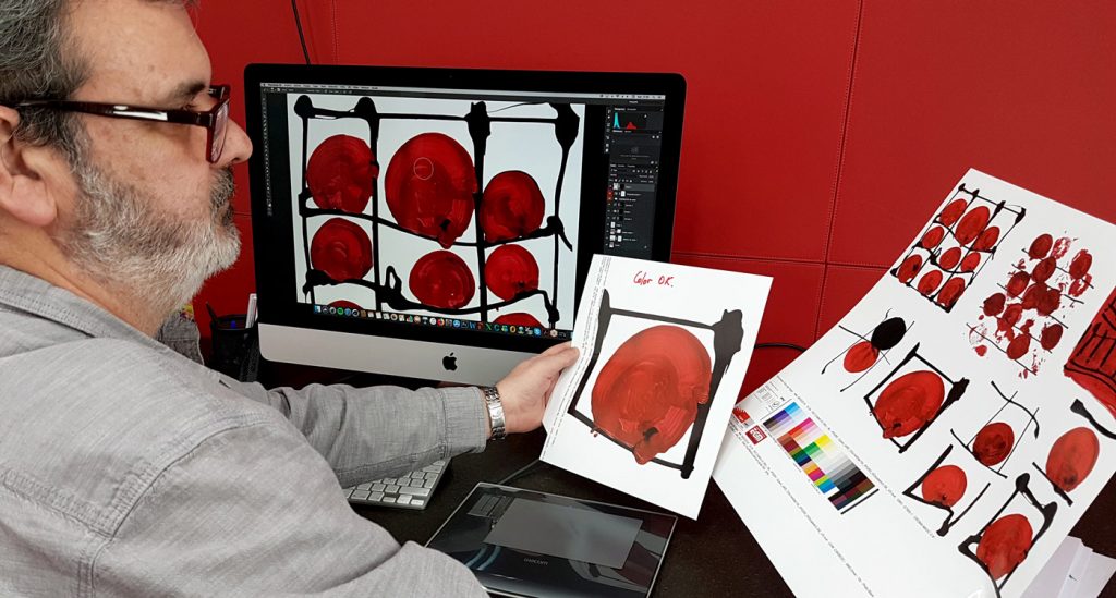 El artista ha confiado a EGM la digitalización de sus obras elegidas para el diseño del cartel de este año, y la preparación de los archivos para su correcta impresión.